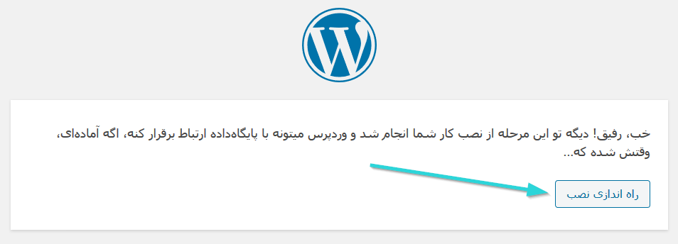 بعد ازینکه روی فرستادن کلیک کردید، اگر تمام مراحل را به درستی پیش رفته باشید و دیتابیس شما با هاست ارتباط برقرار کرده باشد در صفحهی جدید تصویر زیر را خواهید دید. برای نصب وردپرس در سی پنل روی راه اندازی نصب کلیک کنید.