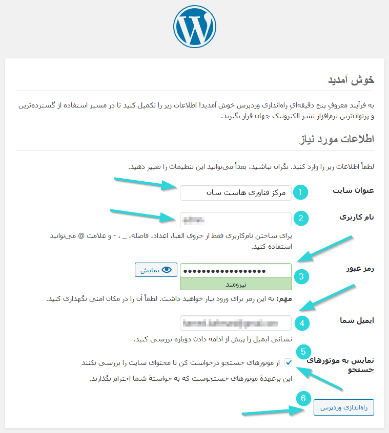 ۵- راه اندازی وردپرس